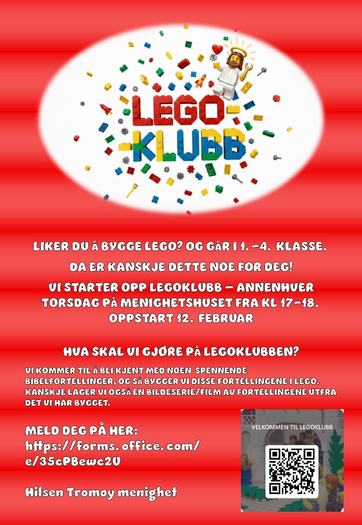 Da er kanskje dette noe for deg! Vi starter opp legoklubb – annenhver torsdag på menighetshuset fra kl 17-18.