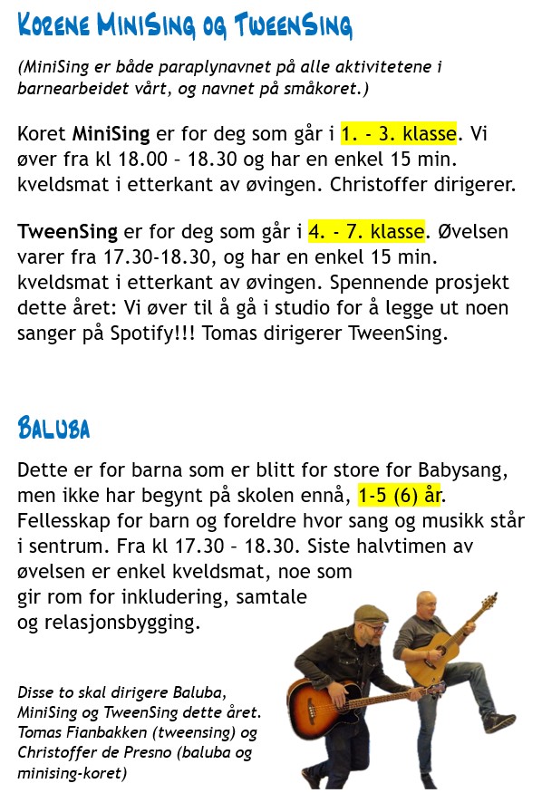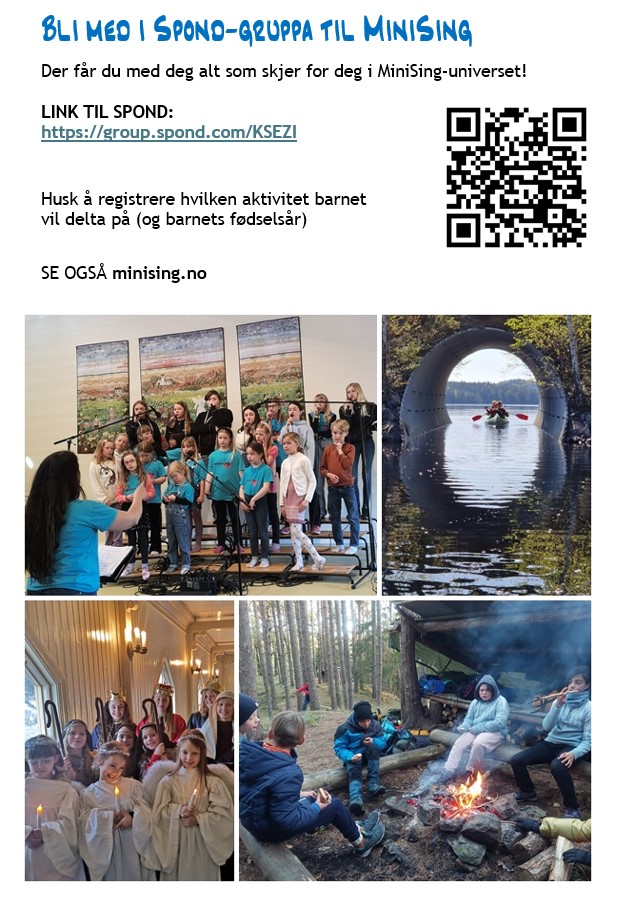 Liker du å synge? Eller kanskje du trives godt ute i skogen, med kniv og øks, bål og pølser? Synes du det er gøy å leke? Eller spise middag med gode venner? Du får det i MiniSing! Hva skjer i MiniSing dette skoleåret?